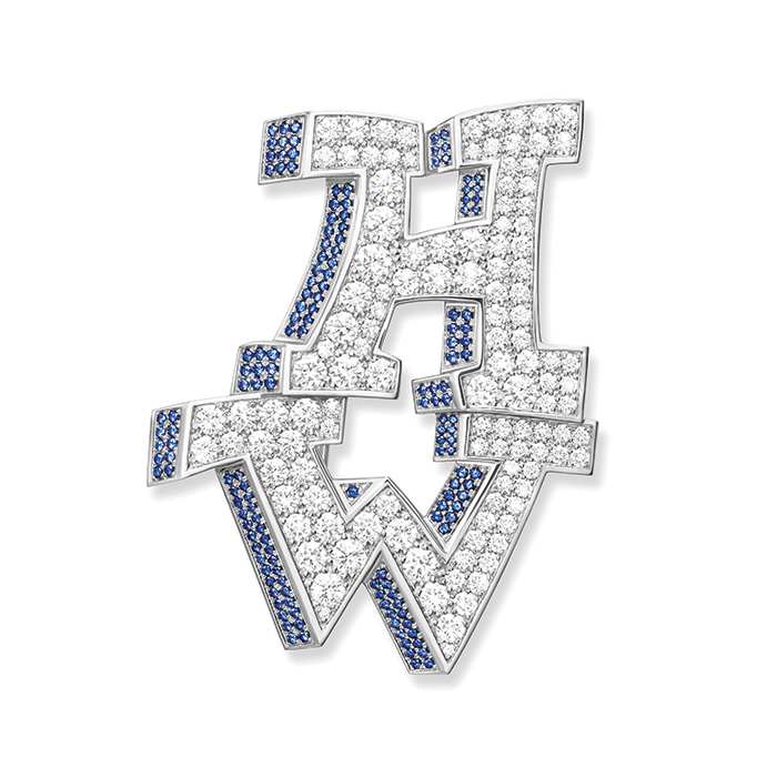 Earrings, pendants, bracelets, and brooches are not conceived as static adornments but as graphic symbols worn on the body. Each piece punctuates the silhouette with the power of an emblem. This contemporary wearability reflects the evolution of fine jewelry, which is moving away from purely ceremonial purposes to embrace a lifestyle. Graffiti thus introduces a notion of attitude, almost performative, where jewelry becomes a form of personal expression.