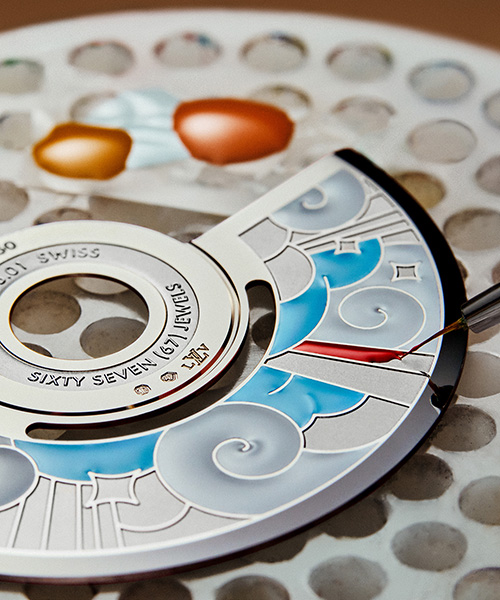 Le cadran constitue sans doute l’élément le plus spectaculaire de cette création. Réalisé selon la technique exigeante de l’émail champlevé et sublimé par un travail d’émail Grand Feu, il mobilise 23 nuances différentes et plus de 250 heures de travail manuel.