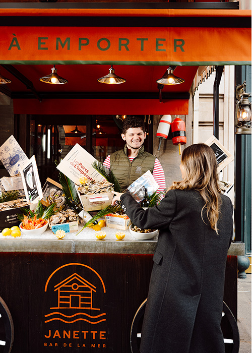 Plus qu’un simple restaurant, Janette Bar de la Mer incarne un nouvel art de vivre la mer en ville. Convivial, joyeux, stylé mais jamais guindé. En bonus, une carte des vins engagée faisant la part belle à la biodynamie, des cocktails iodés, des glaces minute, des desserts à partager et même une formule apéro pour afterworks dépaysants.