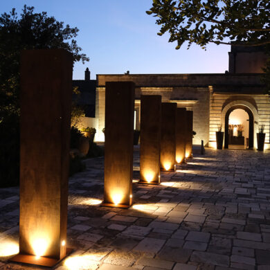 Dominant la baie d’Otranto, le Relais Valle dell’Idro offre un panorama à couper le souffle. Son architecture contemporaine, toute de pierre claire et de bois brut, s’intègre naturellement au paysage.